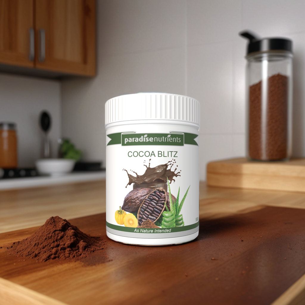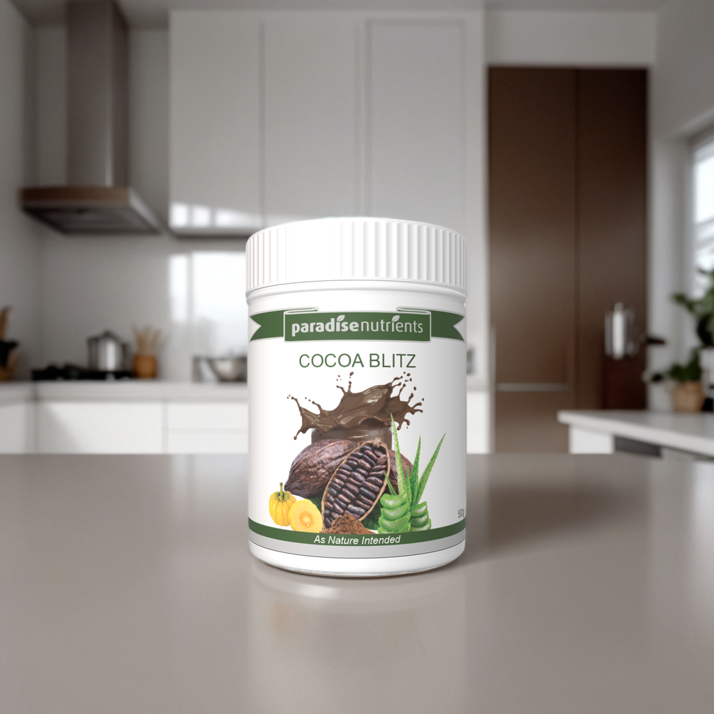Cocoa Blitz is a delicious, sugar-free cocoa drink blended with a unique range of food-grade herbs, amino acids, collagen, colostrum, minerals and vitamins.