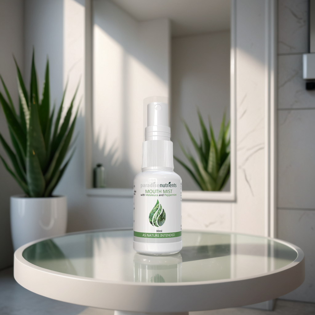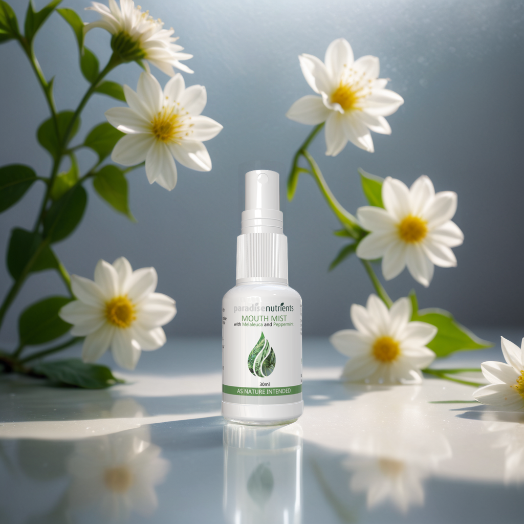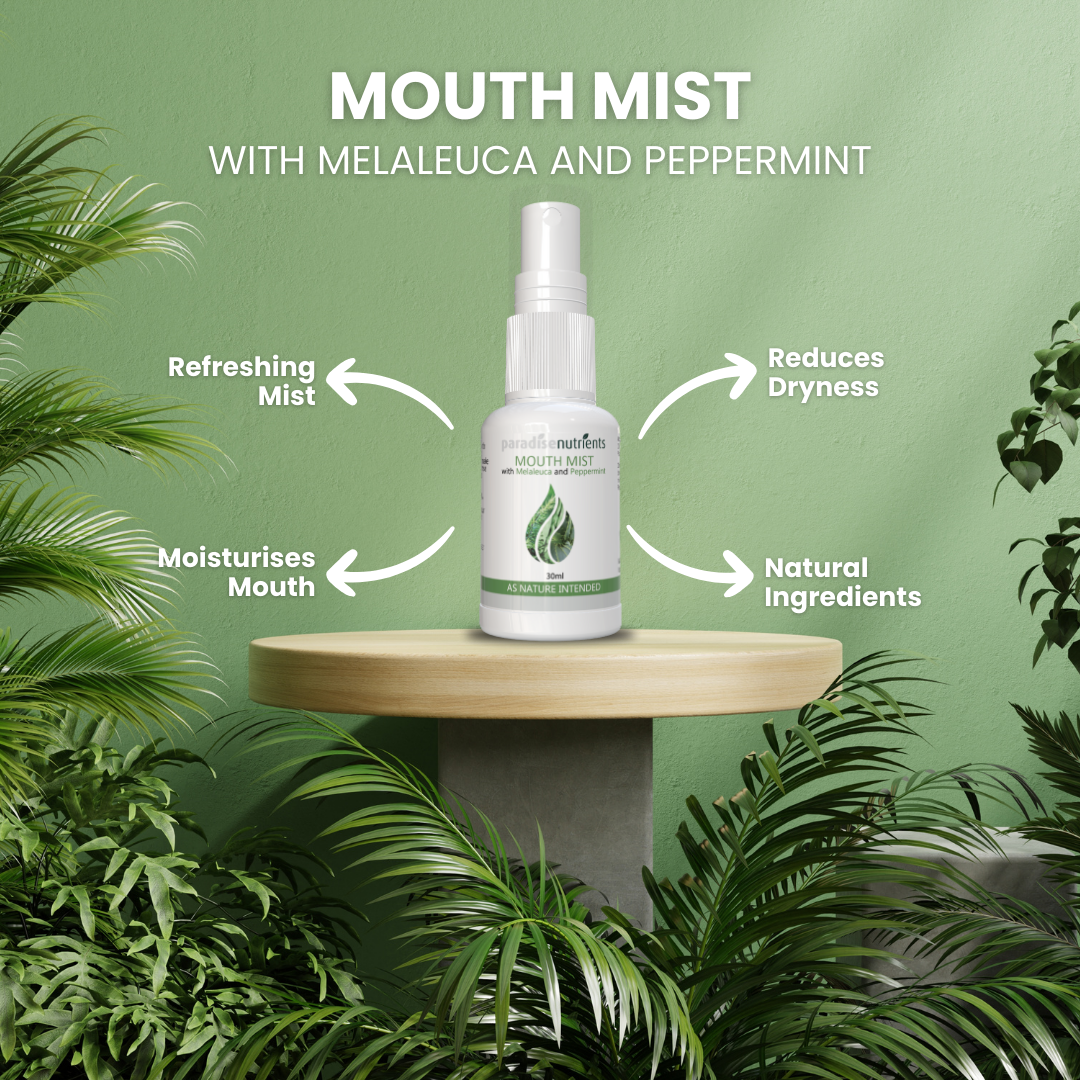 Discover the calming relief of Mouth Mist - a gentle and soothing mist infused with organic tea tree oil, aloe vera, and beneficial minerals. Specially formulated to assist alleviate mouth and throat discomfort, this natural blend provides comfort and freshness, promoting a soothing and revitalising sensation. Embrace the natural goodness and ease discomfort for a refreshed and comfortable mouth and throat.
