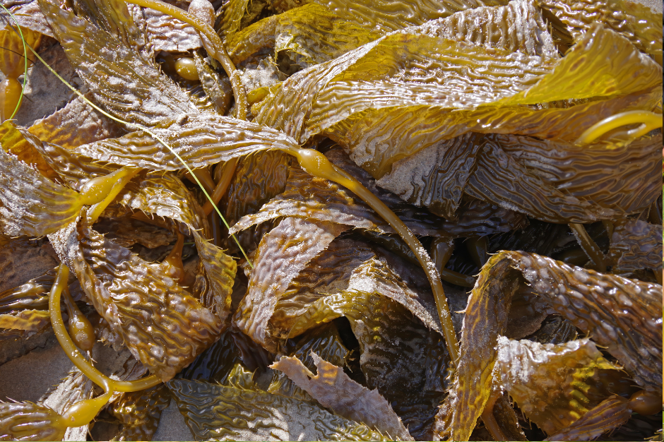 Kelp is large brown algae from the Pacific Ocean. Any plant growing in the sea is seaweed. Seaweeds are algae. The large brown algae, kelp, is harvested, dried and ground. This material is used for kelp tablets and seaweed powder.