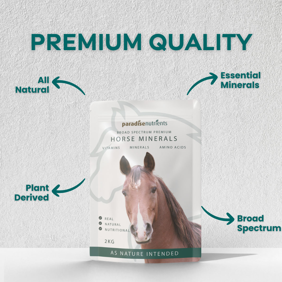 At Paradise Nutrients, your horse's wellbeing is our top priority. Our premium Horse Minerals are meticulously crafted to provide a comprehensive blend of essential nutrients. Each 30 gram serving delivers a potent mix of vitamins, minerals, and amino acid designed to support your horse's health, vitality, and performance.
