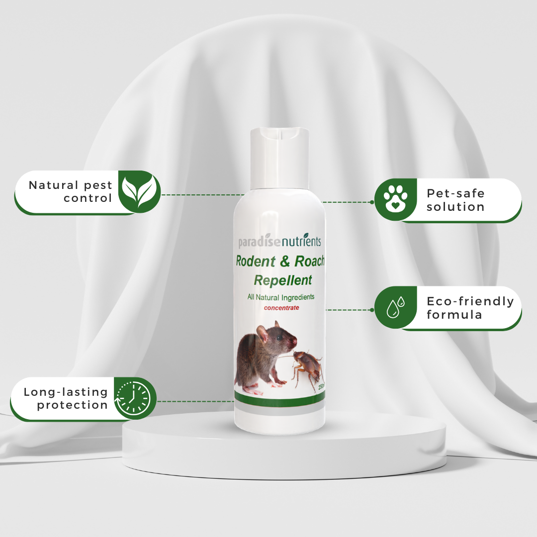 Whether you're tackling pests in your home or preventing them in your garden or camping spots, Rodent & Roach Repellent combines powerful, natural ingredients with versatility and ease of use. Protect your home and loved ones with a product that prioritises safety, sustainability, and effectiveness. Experience the difference of a pest-free space—naturally.