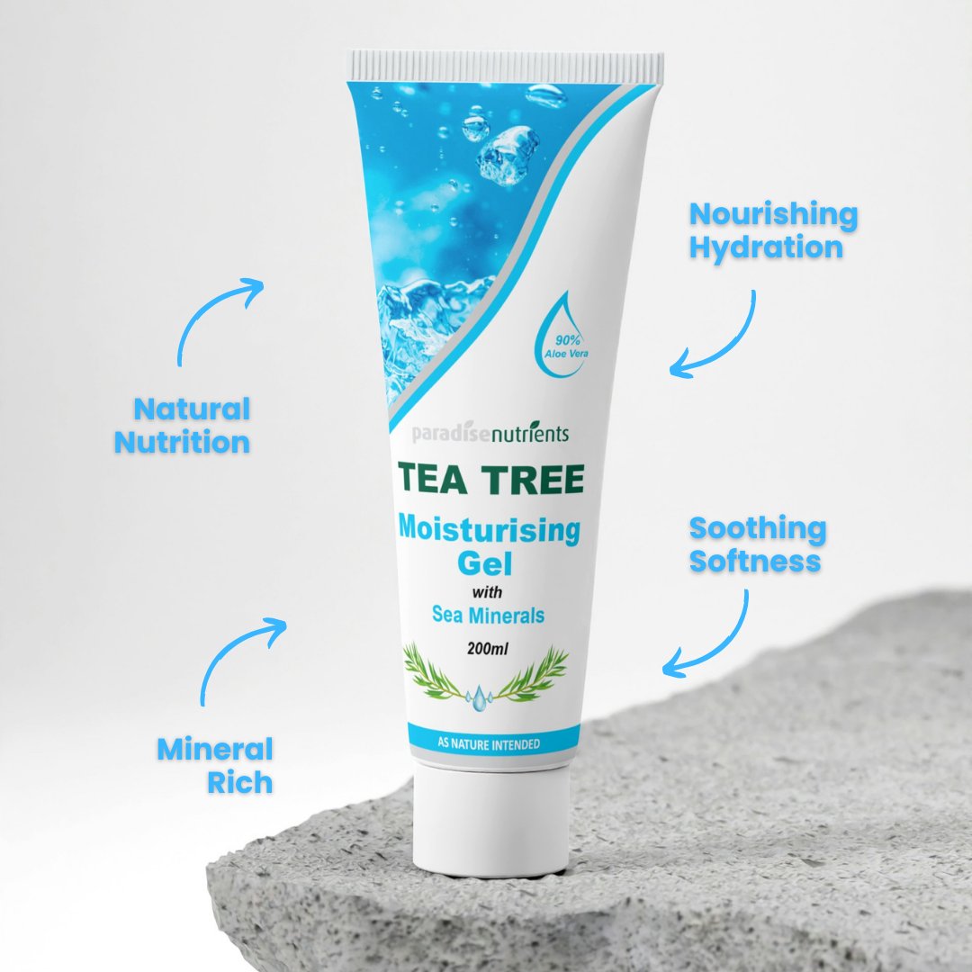 Experience the benefits of Tea Tree Moisturising Gel, a nourishing and soothing all-natural gel that provides a boost of nutrition to your skin. Enriched with a variety of plant-based minerals, vitamins, and amino acids, this gel is scientifically proven to contribute to the overall health of your skin. Made with Natural Australian Tea Tree Oil.