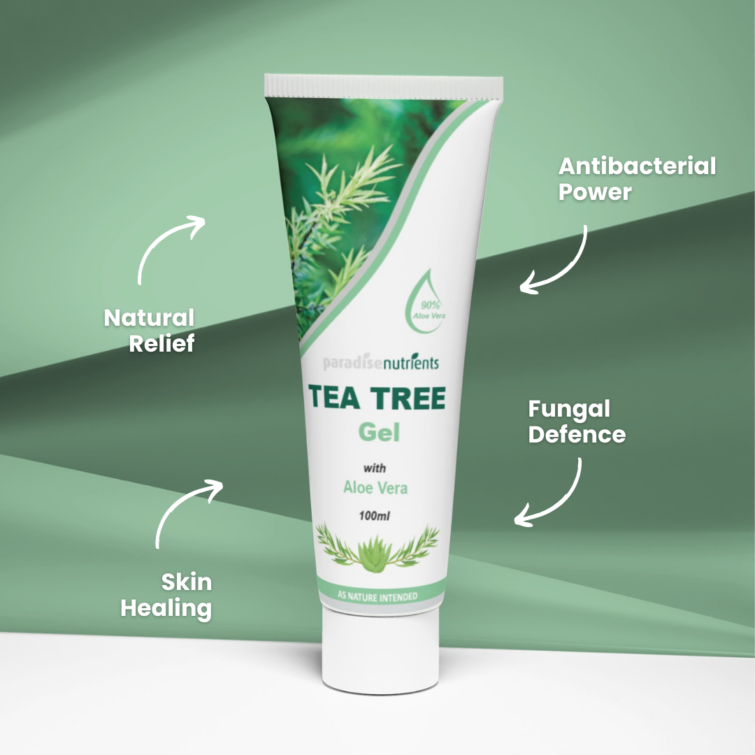 Discover the amazing benefits of Australian Tea Tree Oil with our soft skin gel. Its powerful anti-bacterial, anti-viral, and anti-fungal properties can soothe and heal bites, burns, stings, and minor skin issues. Experience the natural goodness of Australian Tea Tree Oil in our product.