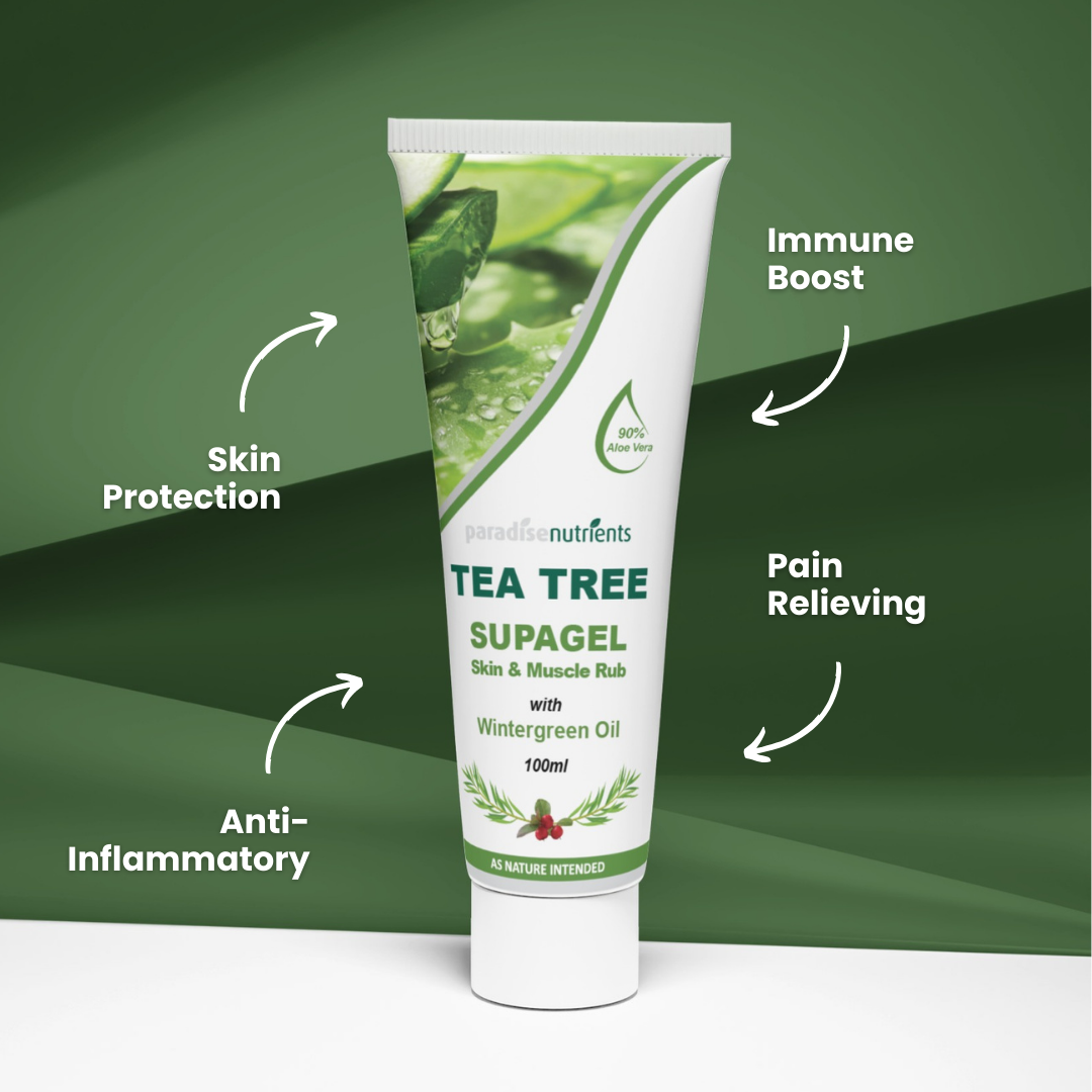 Discover the power of SupaGel, a luxurious plant-based gel infused with a nourishing blend of minerals, vitamins, and amino acids. Through scientific research, SupaGel has shown potential for soothing muscle aches and tension, alleviating menstrual pain, and providing relief for sinus and headaches. Additionally, it may help with bug bites, stings, and fungal irritations. Experience the benefits of Natural Australian Tea Tree Oil in SupaGel.