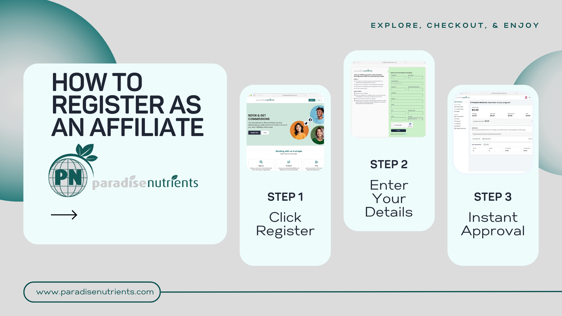 Affiliate Account: Ideal for promoting Paradise Nutrients products online. Affiliates earn a 20% commission on all sales made through their unique affiliate link which has a 90 day cookie duration.